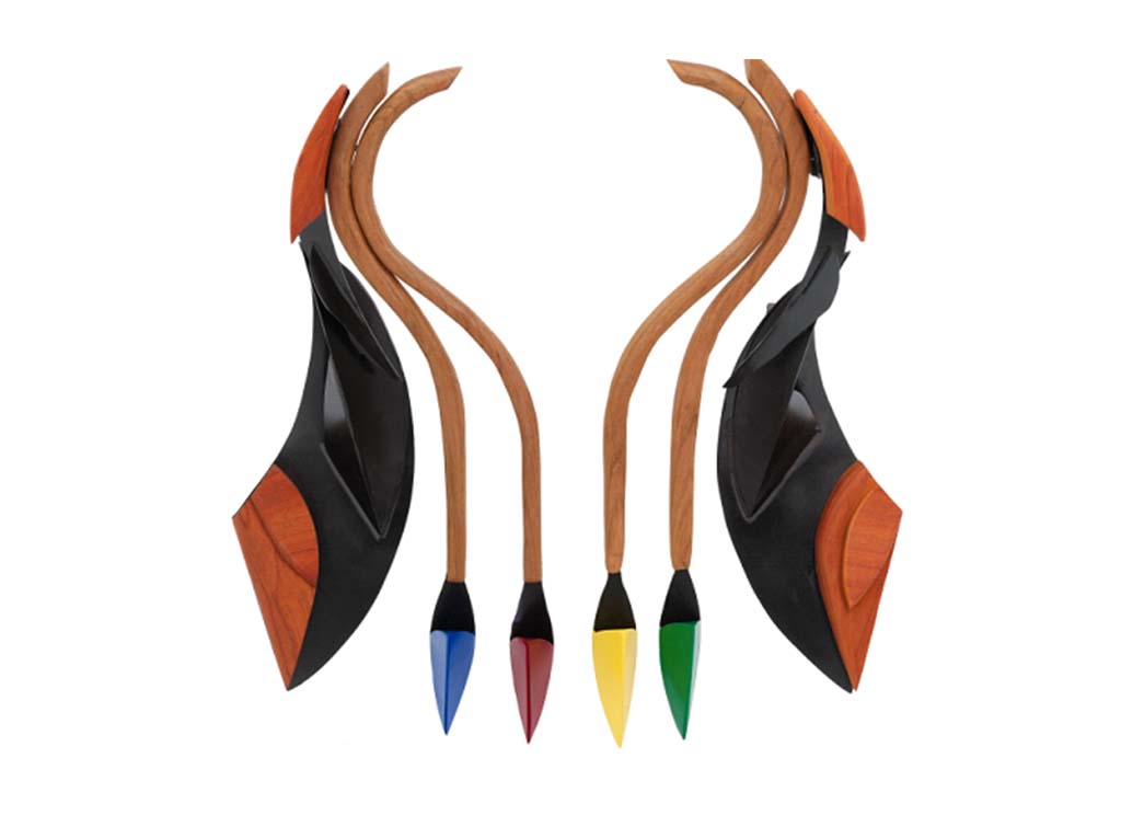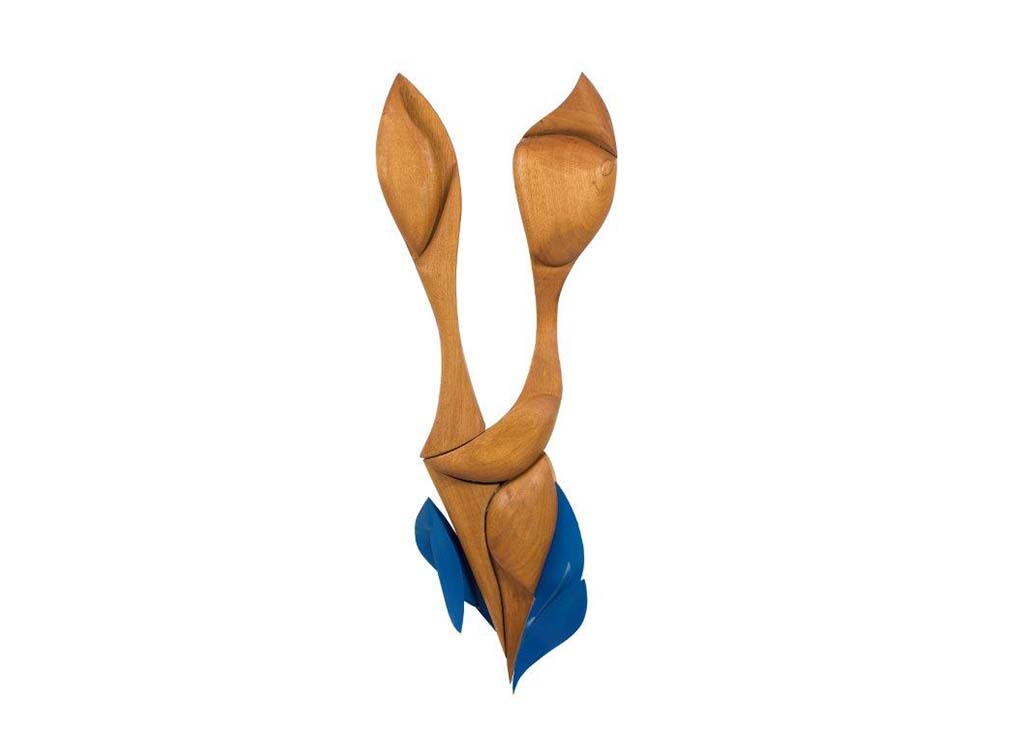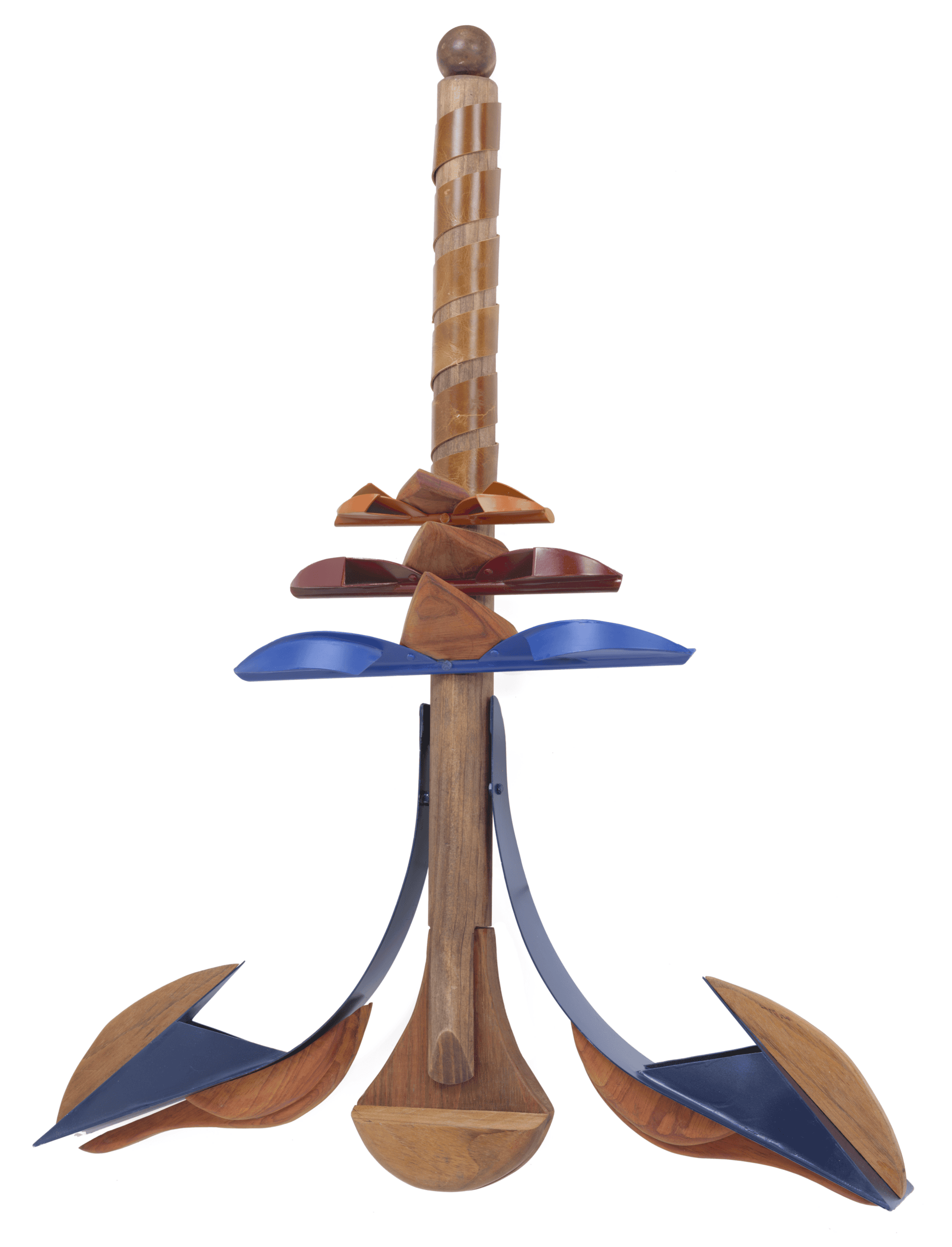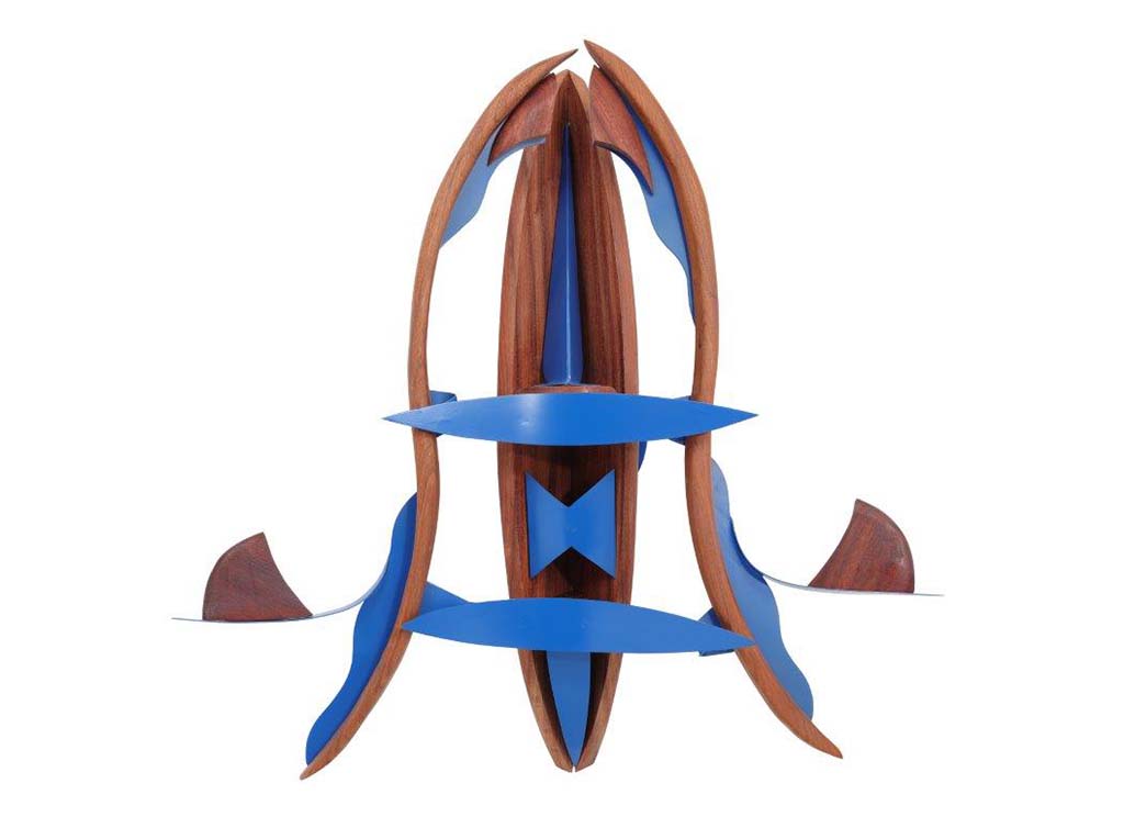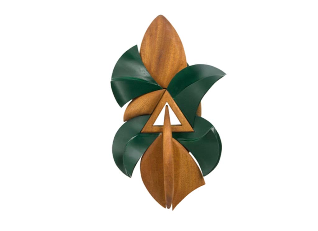 These sculptures of Michael Weinstein are designed to be mounted on any vertical surface. They integrate raw and painted welded and shaped steel in a range of colors, with exotic woods and leather.